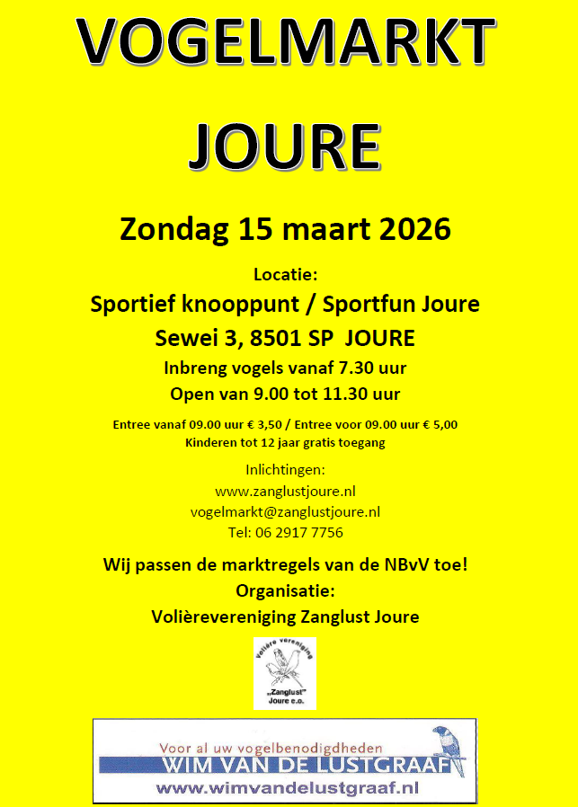 De eerstvolgende Vogelmarkt is zondag 15 maart 2026.